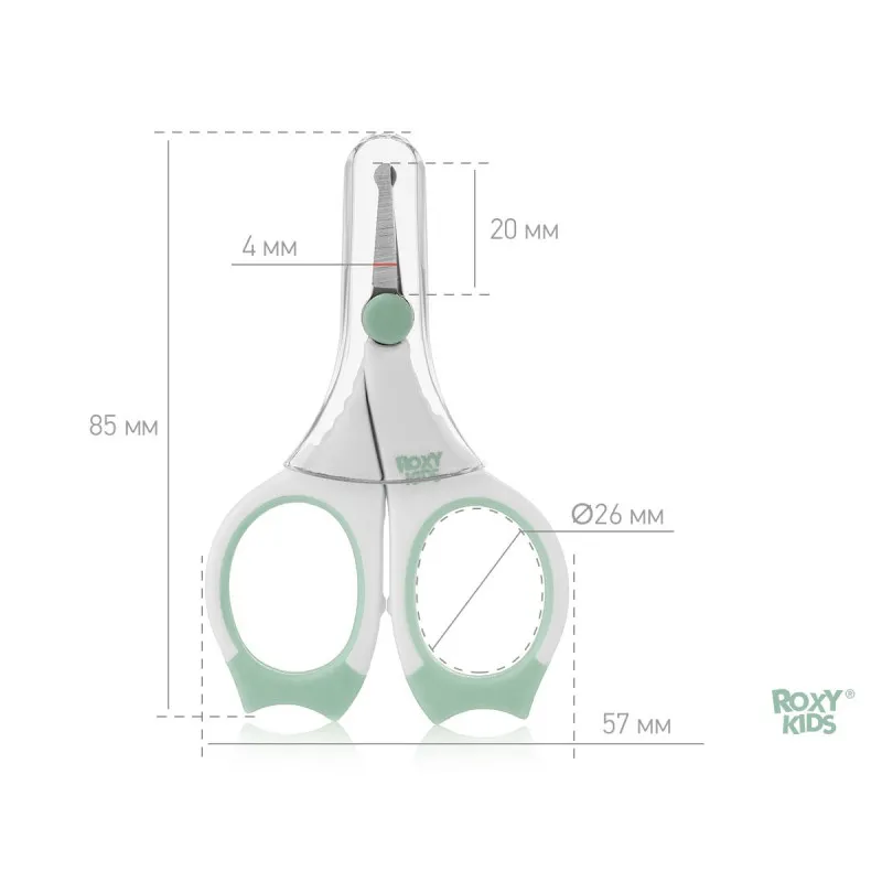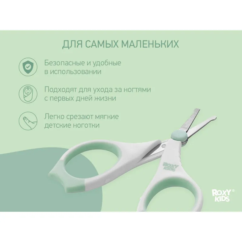 Foarfece de manichiura pentru nou-nascuti Roxy Kids, cu manere cauciucate, Mint (RPS-002-M)