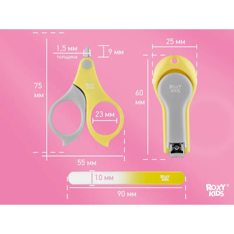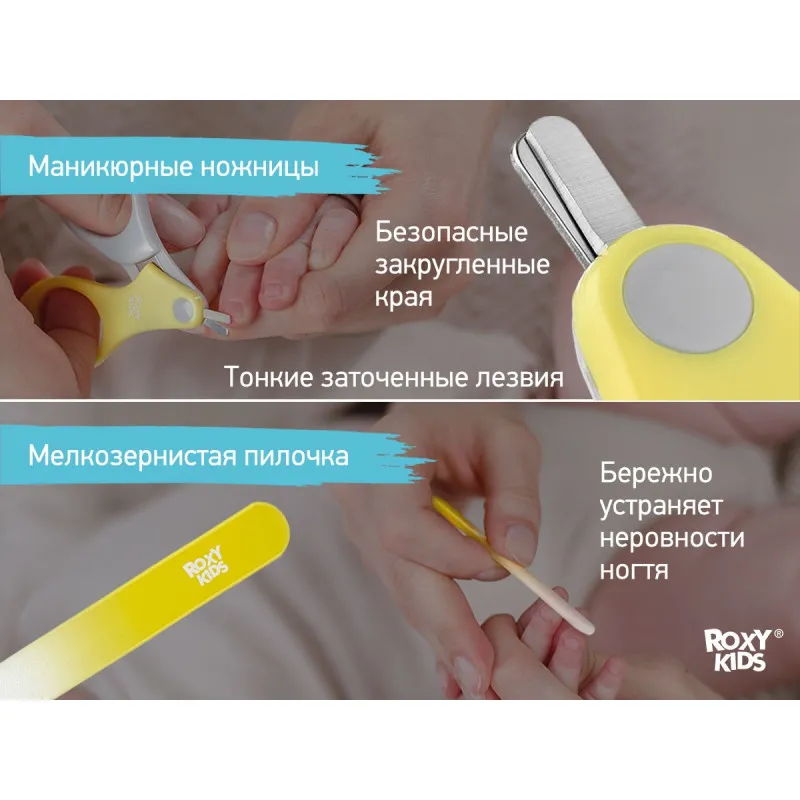 Foarfecele în miniatură sunt ideale pentru unghiile moi și mici ale bebelușilor, o pilă cu granulație fină va elimina unghiile neuniforme după tăiere, cleștele vor ajuta la tăierea îngrijită și uniformă a unghiei, penseta este potrivită pentru curățarea nasului, buricului și urechilor copilului.