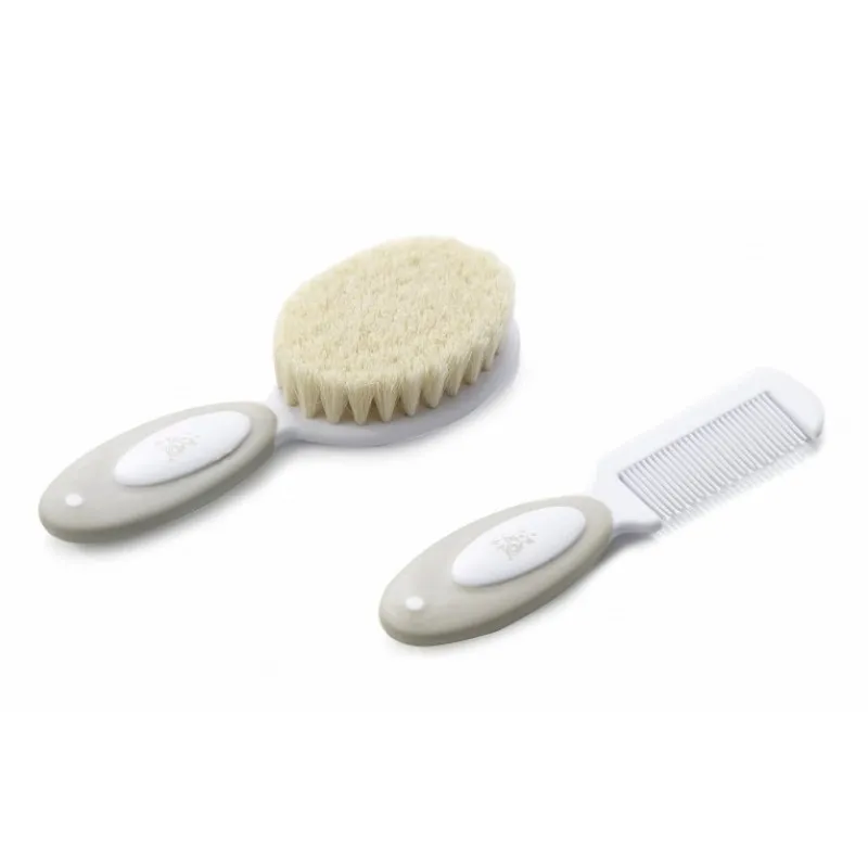 Manerele ergonomice ale periei și pieptenelui sunt proiectate pentru o prindere confortabilă, astfel încât să poți îngriji părul copilului fără efort. Setul este fabricat din materiale sigure pentru copii, fără substanțe toxice, și este potrivit pentru utilizarea zilnică. Acest set de perie și pieptene este un element esențial pentru rutina de îngrijire a copilului și poate fi un cadou practic și util pentru proaspeții părinți.