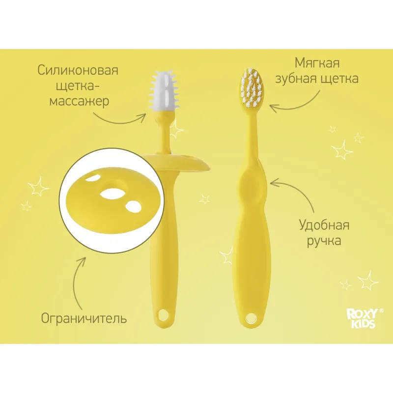 Un set de periuță de dinți și un aparat de masaj ROXY-KIDS vor face ca îngrijirea gingiilor delicate și a primilor dinți ai bebelușului să fie convenabilă și eficientă.