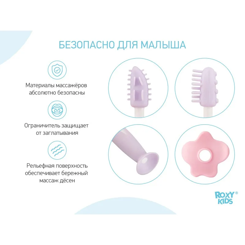 Setul de periuțe de dinți FLOWER de la ROXY-KIDS este conceput pentru îngrijirea bucală confortabilă și sigură pentru un copil din primele luni de viață.