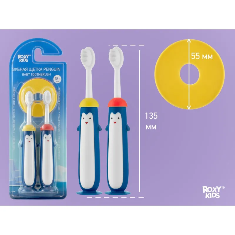 Periuțele de dinți PENGUIN de la ROXY-KIDS cu peri ultra-moi sunt concepute pentru îngrijirea confortabilă și sigură a primilor dinți și a cavității bucale a bebelușului.