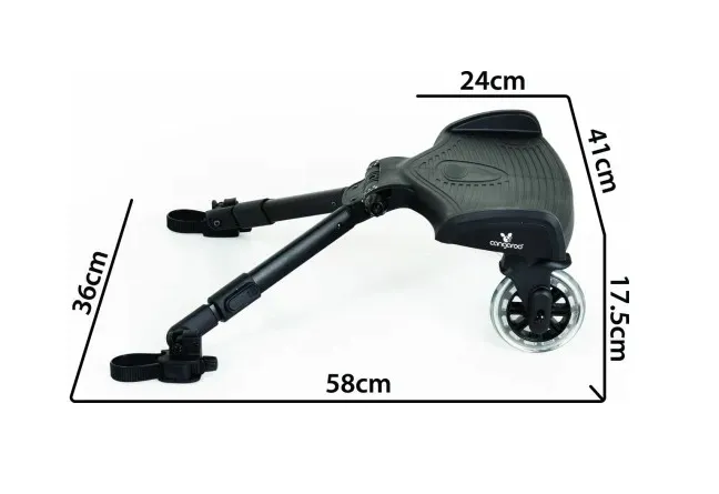 Adaptor de carucior universal pentru al doilea copil Moni Follow Me, care poate fi adaptat la aproape toate tipurile de carucioare.