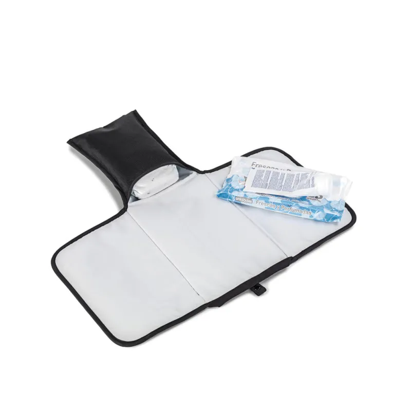 Geanta organizatoare cu suport pentru documente si saltea de infasat, care vine cu un buzunar practic pentru scutece.