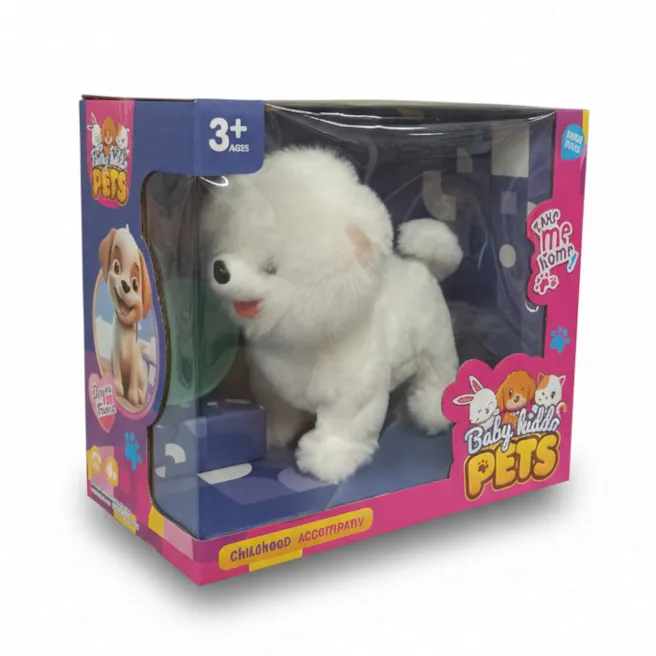 Cățelul este fabricat din pluș de calitate și plăcut la atingere, care imită blana moale. Cățelul are funcții interactive: poate efectua mișcări, emite sunete și reacționa la atingere.