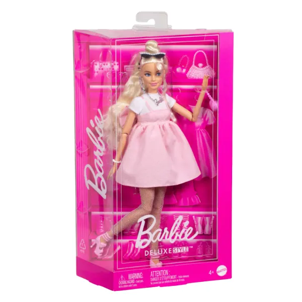 Vă prezentăm păpușa Barbie Deluxe Style în rochie roz pastel Barbiecore cu fundă supradimensionată și păr blond (HYV27), care întruchipează stilul modern și eleganța.