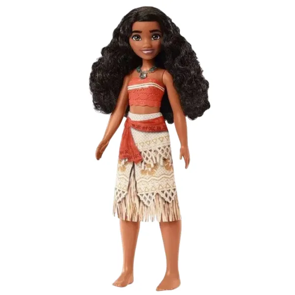 Costumul păpușii include top turnat și fustă moale detașabilă cu design regal.