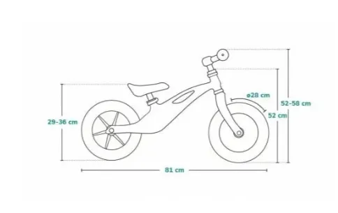 Complectatie: bicicletă pentru echilibru ( fara roti), cheie hexagonală, suport pentru volan TPR, manual de instrucțiuni.