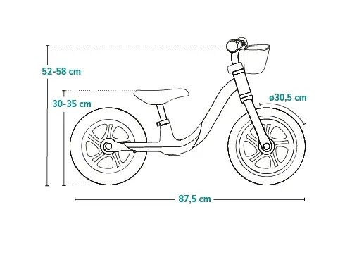 Datorită șeii și ghidonului reglabile în înălțime (30–35 cm pentru șa și 52–58 cm pentru ghidon), bicicleta crește odată cu micuțul tău (până la o greutate de 30 kg), asigurând confortul și postura corectă pentru fiecare aventură.