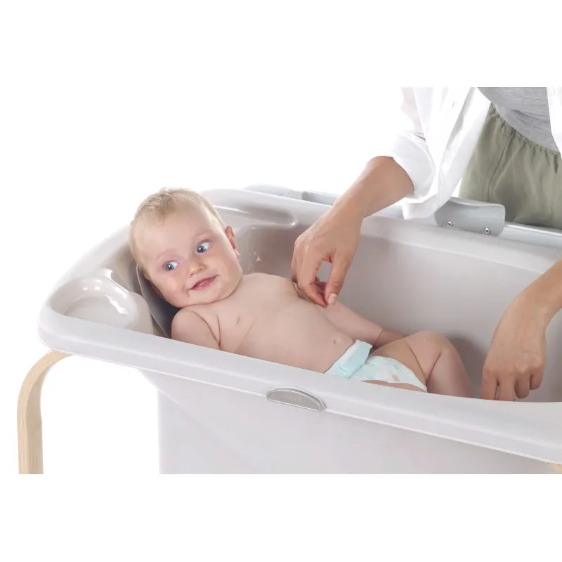 Cadă super ușoară și durabilă, cu picioare care vă permit să o transportați oriunde. Cădița Flip are, de asemenea, roți și o frână pentru siguranța și confortul bebelușului tău în timpul scăldatului.
