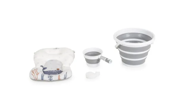 Setul pliabil Moni Balena este alegerea ideală pentru părinții care doresc o soluție practică, elegantă și sigură pentru îmbăierea zilnică a copilului lor.