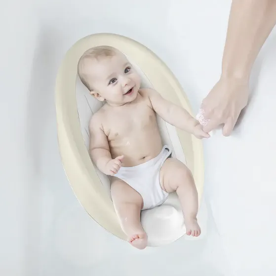 Suportul de baie antiderapant pentru bebeluși este conceput pentru a susține corect corpul copilului în timpul băii, oferind o poziție sigură și relaxantă. Forma ergonomică permite bebelușului să stea comod, iar părintele are mâinile libere pentru spălare.