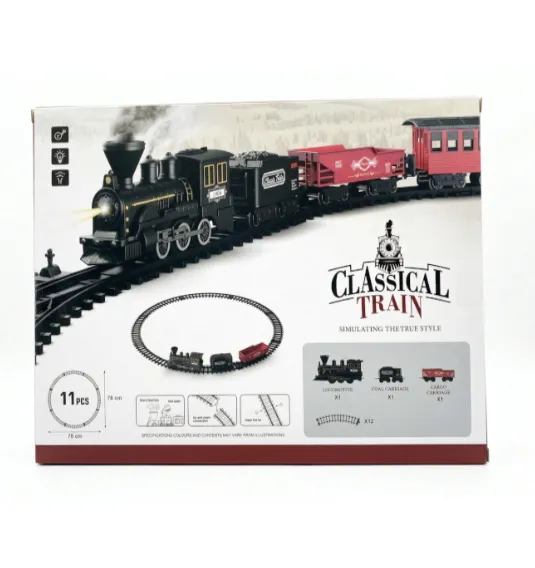 Setul de joacă „Calea ferată” cu 3 vagoane este un tren clasic pentru un joc captivant cu poveste. Setul include o locomotivă, 3 vagoane și elemente de cale ferată, cu ajutorul cărora copilul își poate construi propriul traseu. Setul este realizat în stilul trenurilor retro și este completat cu efecte luminoase și sonore, ceea ce face jocul mai realist și mai interesant.