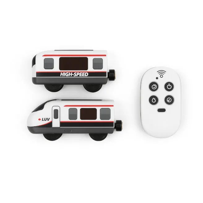 Trenul electric cu telecomandă — o jucărie captivantă pentru copiii pasionați de tehnică și mișcare. Locomotiva albă, modernă, cu vagoane, este controlată prin telecomandă, făcând jocul mai interesant și realist. Trenul se deplasează înainte, emite sunete și lumină, creând atmosfera unei adevărate căi ferate.