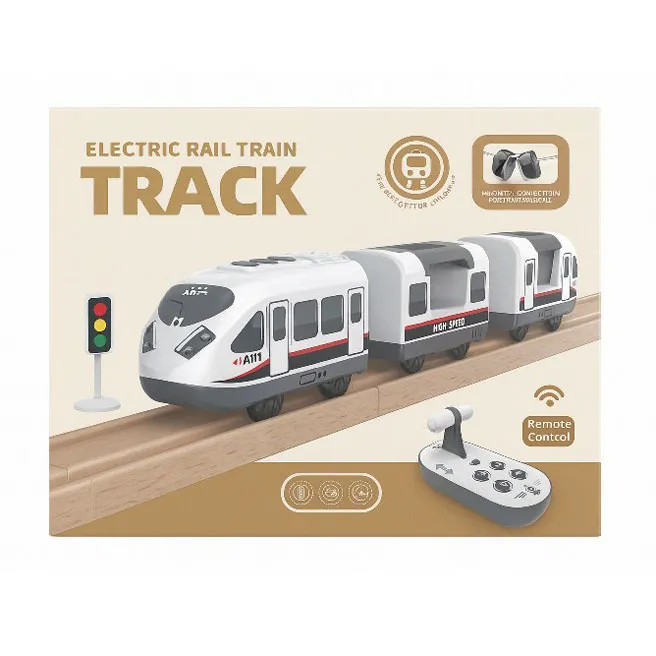 Un set viu și modern pentru micii iubitori de tehnică! Trenul electric AUtree este format din trei vagoane conectate cu magneți și este controlat cu ajutorul unei telecomenzi elegante cu joystick.