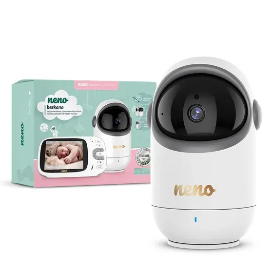 Descoperiți videonanny-ul modern Neno Berkano cu cap rotativ, care permite observarea copilului pe o distanță de 300 de grade pe orizontală și 50 de grade pe verticală. Părintele poate urmări mișcările copilului cu ajutorul săgeților de pe monitor.