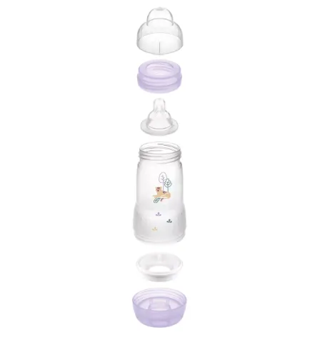 Sticla pentru bebeluși MAM Anti-Colic permite copiilor să bea confortabil în propriul lor ritm.