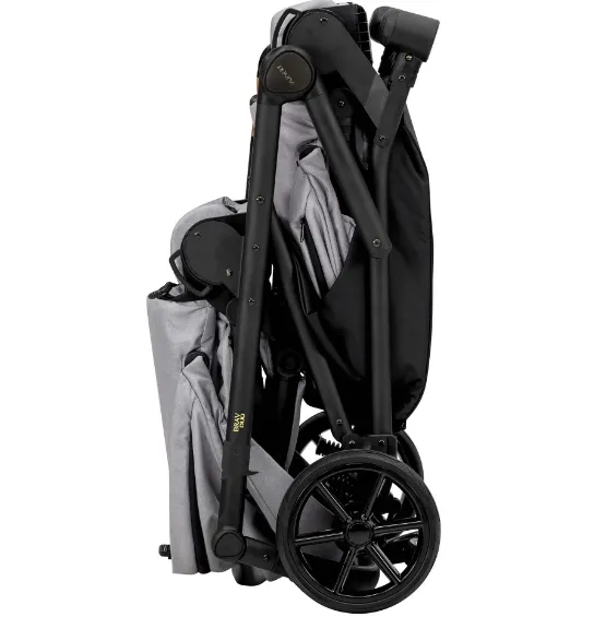 Compact când este pliat. Modelul Brav Duo se pliază ușor într-o dimensiune compactă, chiar și cu cărucioarele fixate, ceea ce este esențial cu doi copii.