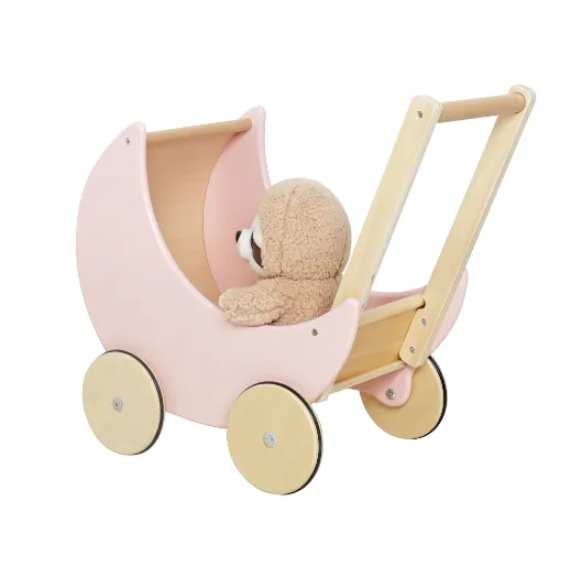 Căruț pentru păpuși din lemn, 403048 cm, roz, W16E112D este o jucărie durabilă și elegantă, ideală pentru micii iubitori de păpuși. Fabricat din lemn natural de calitate și vopsit cu vopsele sigure, non-toxice, căruțul oferă stabilitate și confort în timpul jocului.