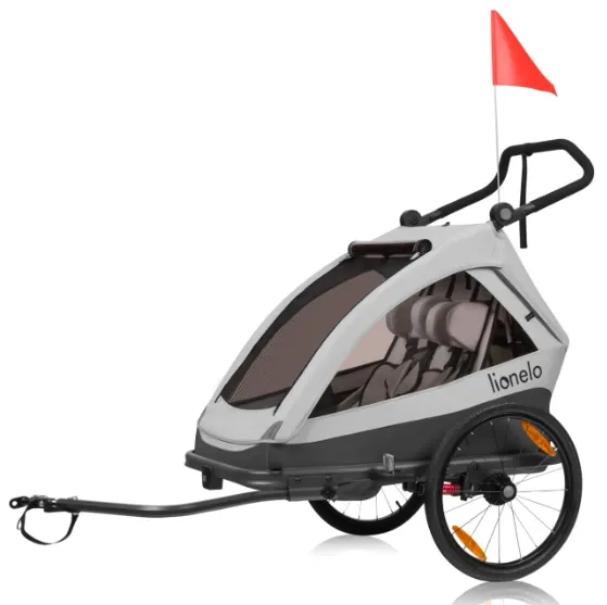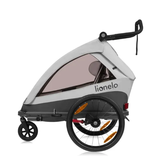Lionelo Cama este un produs 2 în 1 care combină funcțiile unui remorcă pentru bicicletă și a unei cărucioare. Amortizarea ultra-comodă face ca Cama să fie o soluție perfectă pentru mersul pe terenuri mai dificile, în timp ce mânerul său reglabil în mai multe trepte asigură plimbări confortabile în oraș. Sistemul inovator All-Round-Safety garantează protecția micuțului dumneavoastră, protejând împotriva impacturilor potențiale și oferind o bună vizibilitate în condiții de iluminare redusă. Pentru un confort maxim, am inclus spătarul Head+ cu o plasă specială care permite copiilor să își odihnească capul confortabil, mai ales în timpul somnului. Cu o capacitate de încărcare mare de 22 kg pe copil, remorca poate acomoda confortabil atât unul, cât și doi copii. Lățimea optimă (80 cm) asigură manevrabilitate ușoară în timpul mersului.