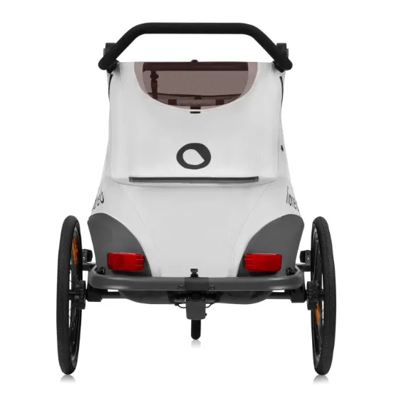 Cama servește funcții duble atât ca remorcă pentru bicicletă, cât și ca cărucior versatil. Echipat cu două scaune, permite unui părinte să transporte doi copii simultan, dar funcționează eficient și atunci când se transportă un singur copil. Pentru a schimba funcția, pur și simplu detașați dîshlul pentru bicicletă și înlocuiți-l cu roata din față inclusă în set.