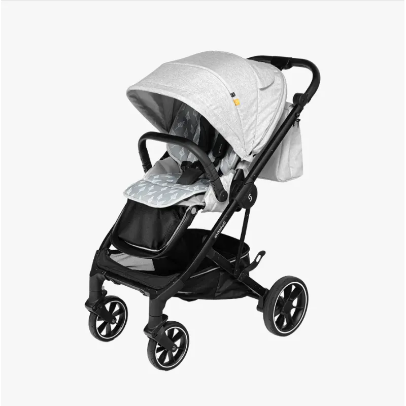 Căruciorul Moss 2in1 respectă standardele și a fost supus unei verificari în 7 pași în laboratoare independente, furnizori și părinți. Are centuri de siguranță în 5 puncte, o frână confortabilă și dungi reflectorizante.