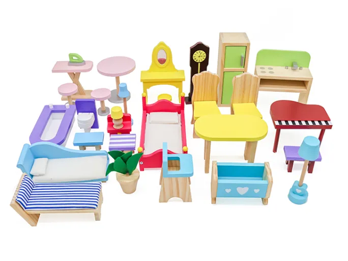 Casă de păpuși din lemn cu mobilier, cod W06A358 — un set de joacă impresionant pentru copii, ideal pentru jocuri de rol creative.