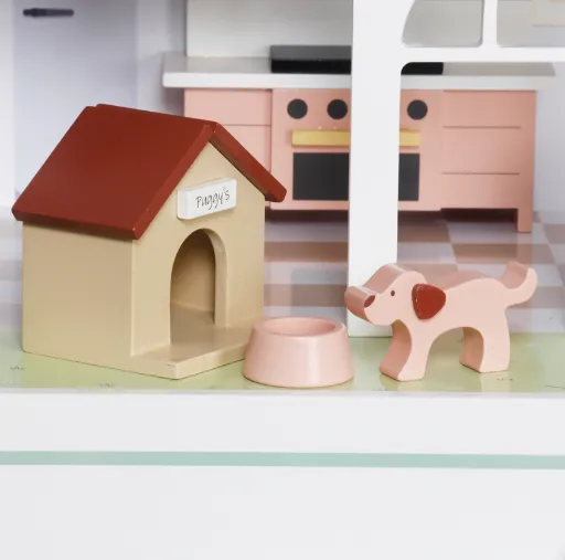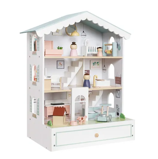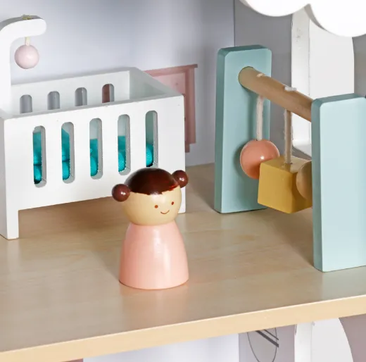 Căsuță din lemn pentru păpuși cu iluminare și funcție de povestire, cod W06A578 — o jucărie specială care îmbină distracția cu învățarea.