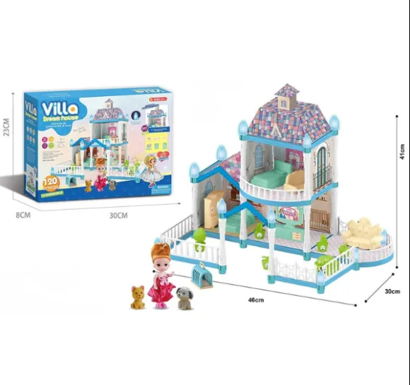 Căsuță pentru păpuși „Vila Visurilor” + accesorii, cu iluminare de noapte, 120 elem.