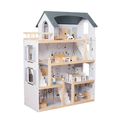 Căsuța are mai multe niveluri și camere și include 19 piese de mobilier, oferind o experiență de joc captivantă și contribuind la dezvoltarea imaginației copilului. Potrivită pentru păpuși de până la 30 cm. Robustă, sigură și cu un design atractiv — cadoul perfect pentru orice copil.
