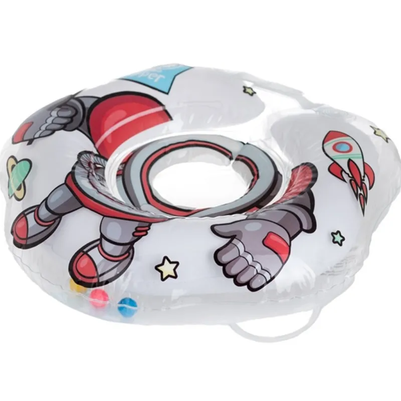 Accesoriul gonflabil pentru gatul bebelusului este realizat din polimer modern sigur si are, de asemenea, doua camere de aer, in interiorul carora se afla mingi de zornaie pentru o experienta de baie mai incitanta pentru bebelus.