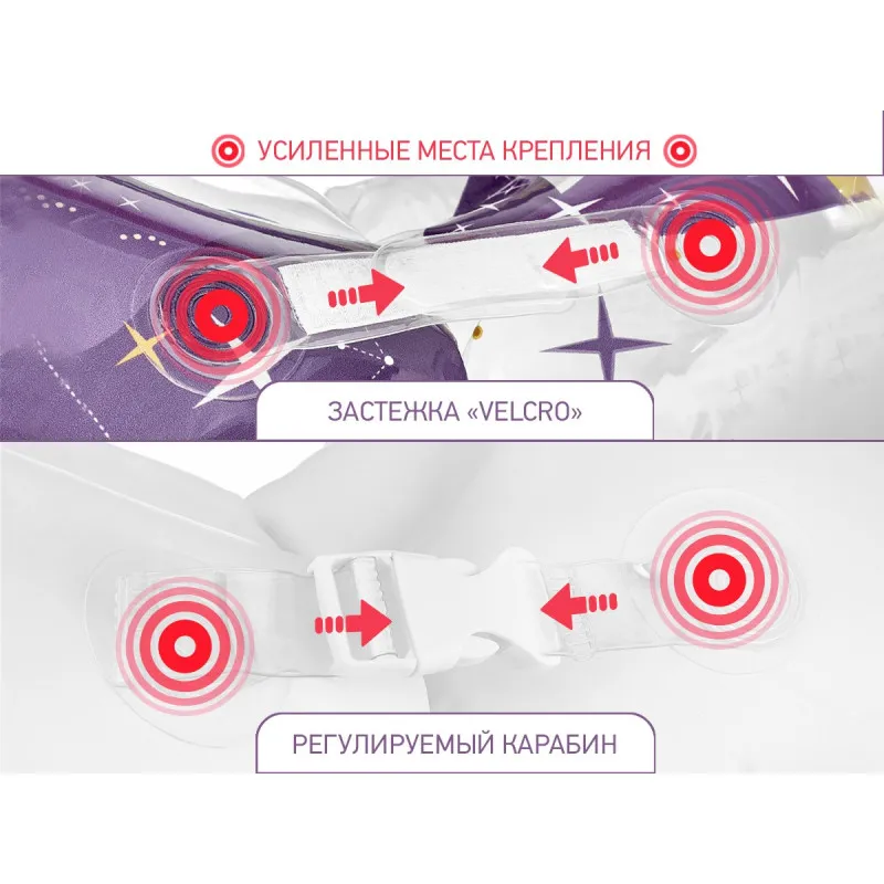 Fixarea fiabilă este asigurată de două curele Velcro reglabile convenabile și o carabină.