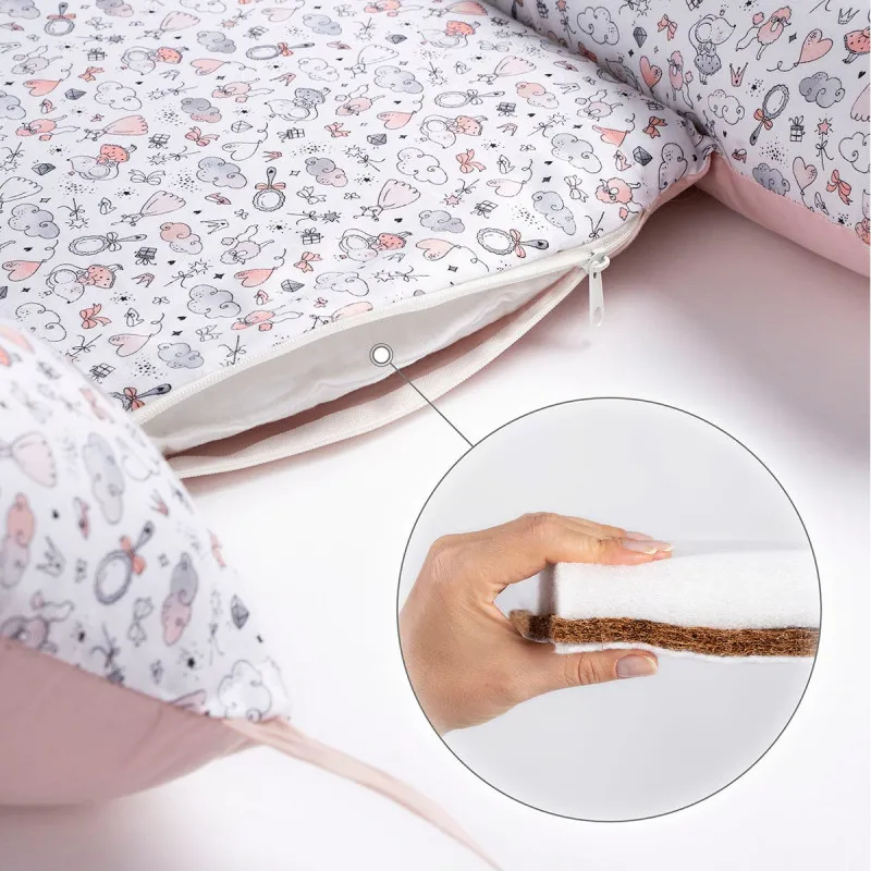 Husa de la babynest este detasabila, cu fermoar. Puteți obține cu ușurință atât salteaua, cât și umplutura laterală și puteți spăla husa. Fermoarele din carcasă sunt cusute într-un mod special, astfel încât copilul să nu poată ajunge la ele și să-și ciupească accidental degetul.