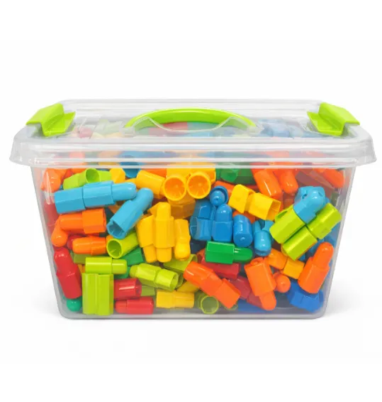 Set de construcție în cutie, 160 de piese — un set colorat pentru joacă captivantă și primele construcții creative. Piesele se asamblează ușor, ajutând copilul să-și dezvolte motricitatea fină, gândirea spațială și imaginația. Cutia practică cu capac permite depozitarea ușoară a setului și transportarea acestuia.