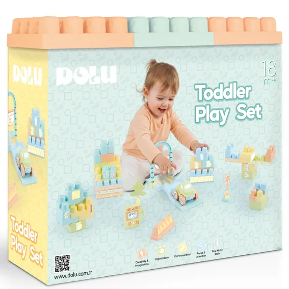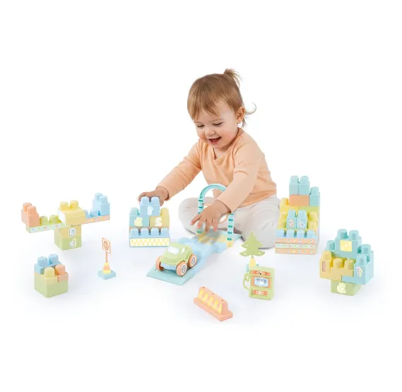 Set de joacă pentru copii cu piese de construcție, conceput pentru activități creative și scenarii interactive. Setul include 50 de piese în diferite forme și culori, care pot fi combinate pentru a construi și explora prin joacă.
