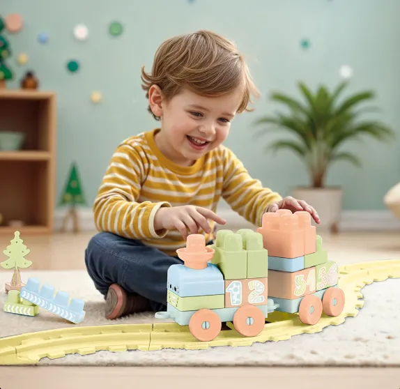 Tren pentru copii cu piese de construcție și șină, conceput pentru joacă interactivă și dezvoltarea creativității. Setul include 36 de piese care permit construirea trenului și realizarea unui traseu complet, oferind copilului posibilitatea de a crea propriile scenarii de joc.