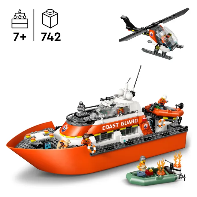 Constructor LEGO City Barcă de salvare și elicopter al pazei de coastă, art. 60504