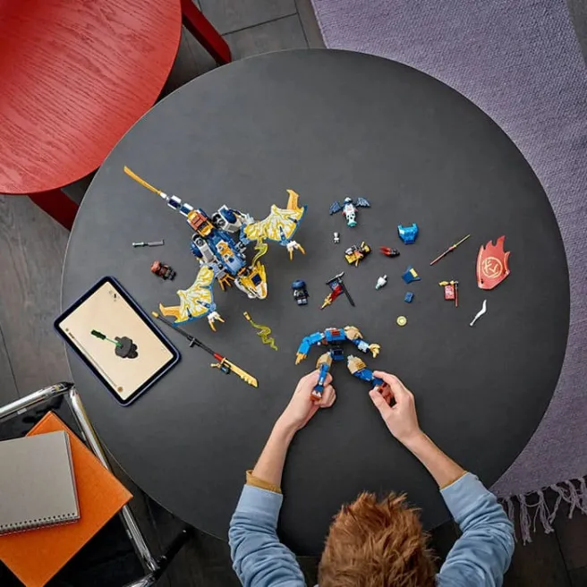 Jucăria combo ninja Rogues Mech Dragon Rider (71843) le permite copiilor să înceapă acțiunea poveștilor din cel de-al treilea sezon al show-ului TV NINJAGO Dragons Rising. Copiii se pot juca separat cu jucăria mech și cu primul dragon robot NINJAGO, apoi le pot combina în uimitorul Rogues Mech Dragon Rider.