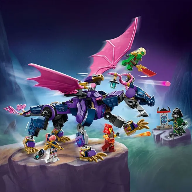 Jucăria LEGO NINJAGO Rontu Dragon Master (71842) permite fanilor ninja să recreeze scene captivante din cel de-al treilea sezon al serialului TV NINJAGO Dragons Rising. Acest set de construcții pentru copii prezintă un dragon cu coadă, labe, aripi, cap și maxilar mobile, 2 poziții pentru a plasa minifigura pe spate și un vârf de tragere sub fiecare aripă.