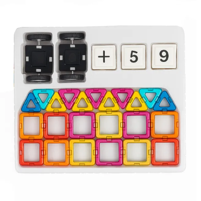 Constructor magnetic, 63 piese Un constructor magnetic colorat și captivant, care ajută copilul să-și dezvolte logica, imaginația și gândirea spațială. Piesele se conectează ușor datorită magneților integrați, permițând crearea diferitelor forme, modele și construcții. Ideal pentru joaca de acasă sau de la grădiniță.
