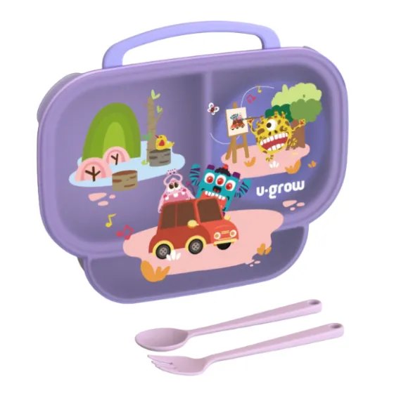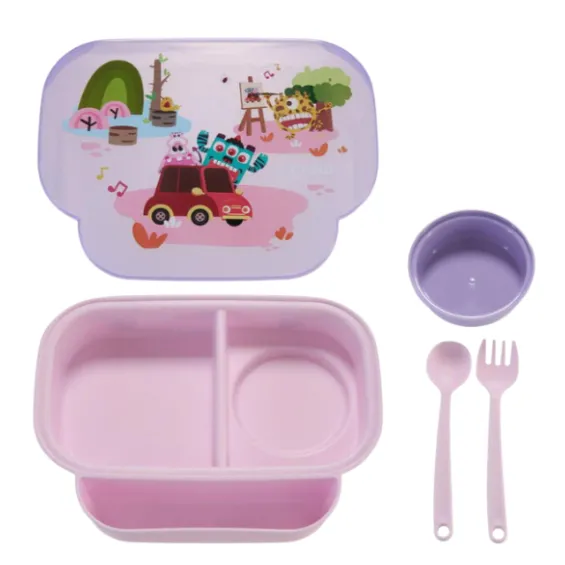 Caserolă compartimentată 3 în 1 cu linguriță, furculiță și capac, mov