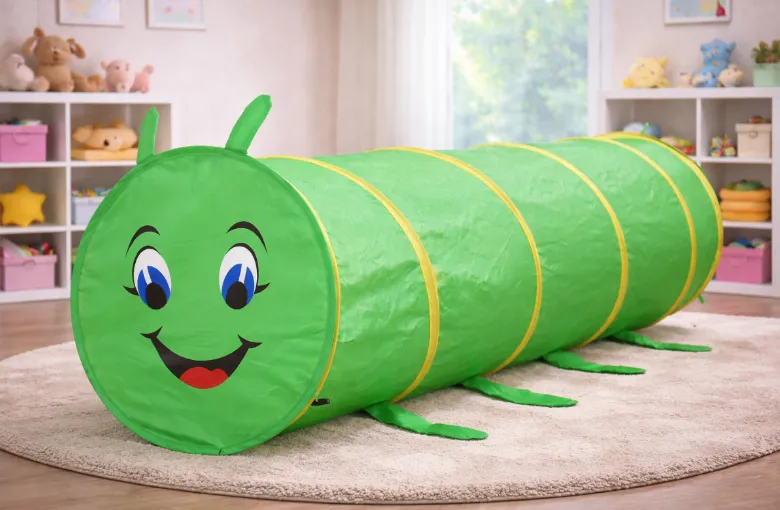 Designul sub formă de omidă colorată atrage imediat atenția copiilor și încurajează mișcarea, coordonarea și imaginația. Structura ușoară și pliabilă permite montarea și depozitarea rapidă, fără a ocupa mult spațiu.