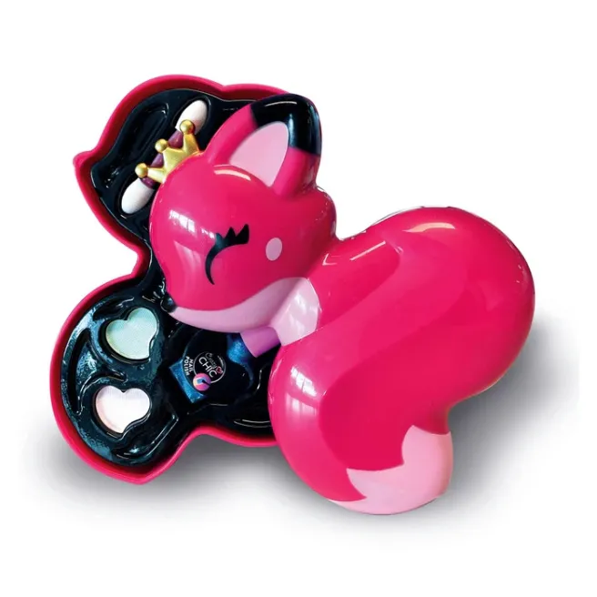 Trusa portabilă în formă de vulpe conține tot ce ai nevoie pentru a crea look-ul perfect: câteva farduri colorate, o pensulă și ojă.