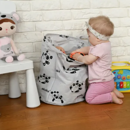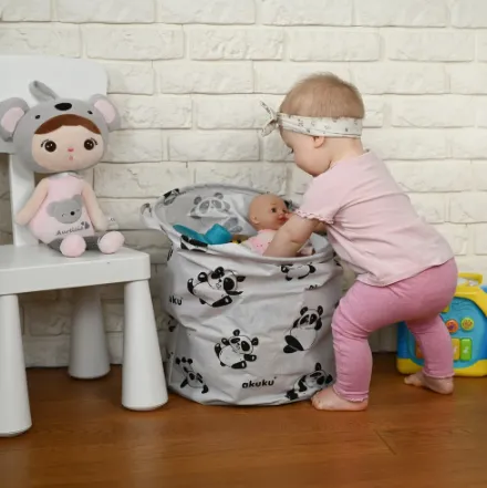 Un coș modern și practic, ideal pentru camera copilului, dormitor sau baie. Perfect pentru depozitarea jucăriilor, plușurilor, cărților, rufelor și altor obiecte. Interiorul este acoperit cu un material impermeabil, astfel încât articolele umede nu pătează partea exterioară. Mânerele laterale permit transportul sau agățarea cu ușurință.