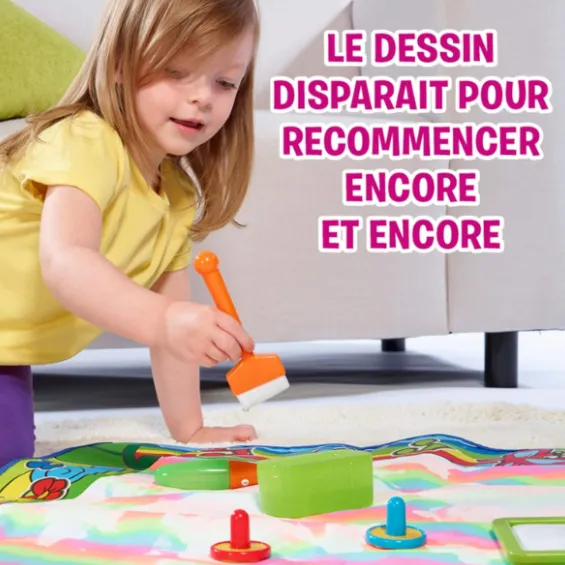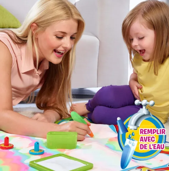 Creează opere de artă vii fără murdărie și dezordine cu covorul pentru desen Aquadoodle! Acest set include un marker special care se umple cu apă de la robinet. Desenează pe covor folosind markerul, pensule, mâini sau picioare ude – și bucură-te de procesul de creație.