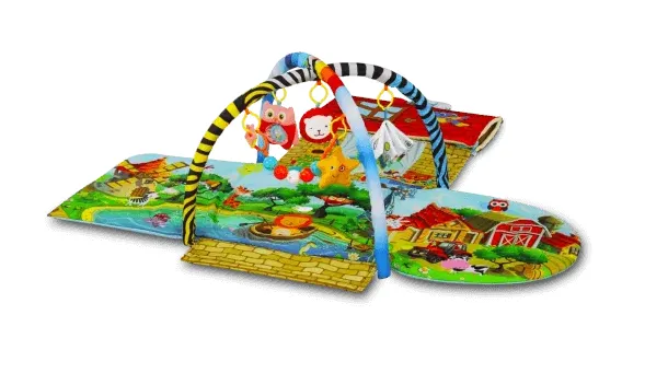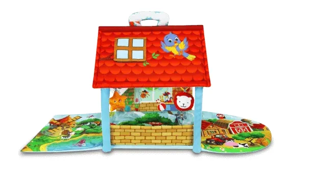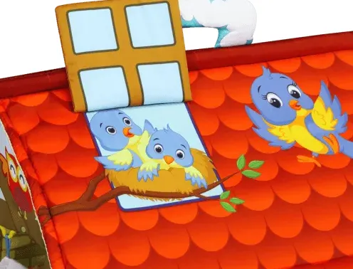 Functionalitate: saltea groasa cu un strat izolator de la suprafata; posibilitatea a două configurații - sub formă de covor plat cu arcade sau covor cu casă; design original care stimulează dezvoltarea simțurilor; jucării interactive