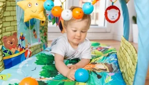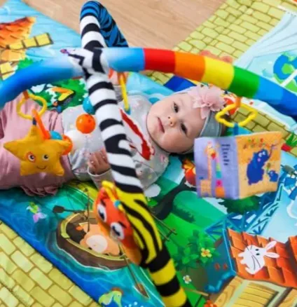 Designul grafic al covorașului de dezvoltare are un efect pozitiv asupra dezvoltării viziunii și a imaginației.