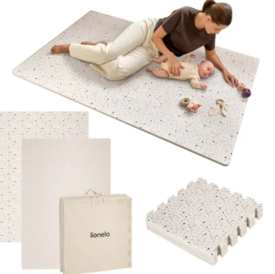 Covorașul de joacă Lionelo Yoka transformă orice podea într-un spațiu sigur, moale și confortabil pentru bebeluși încă din primele zile de viață. Setul este format din 6 plăci puzzle din spumă premium, cu design față-verso în nuanțe pastelate, oferind o suprafață generoasă pentru joacă, târâre și relaxare.