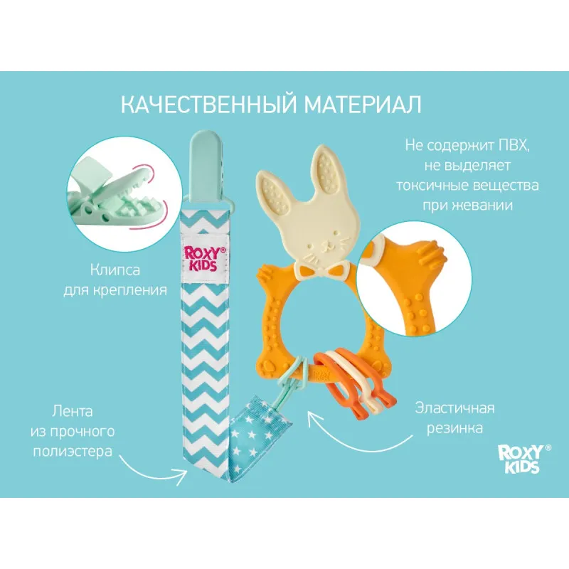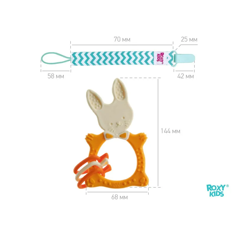 Teether BUNNY TEETHER de la ROXY-KIDS este potrivit pentru toate etapele de dentiție datorită elementelor de diferite grade de rigiditate.