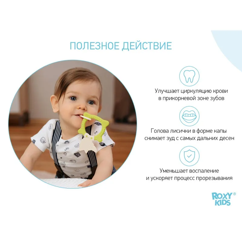Dentisorul FOX TEETHER de la ROXY-KIDS este potrivit pentru toate etapele de dentitie la bebelusi.